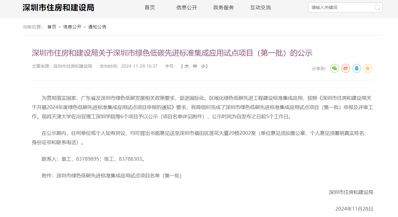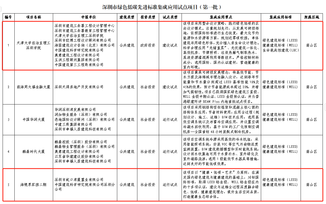 近日,深圳市住房和建設(shè)局發(fā)布了深圳市綠色低碳先進標準集成應(yīng)用試點項目(第一批)公示,中國建研院深圳分公司兩個項目成功入選,在本次公示的六個試點項目中數(shù)量處于領(lǐng)先地位,充分體現(xiàn)了中國建研院深圳分公司在大灣區(qū)綠色低碳發(fā)展領(lǐng)域的品牌影響力。