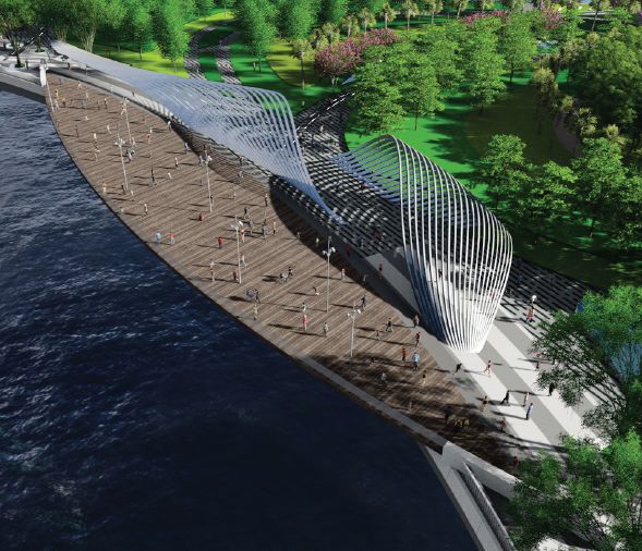 寶安海濱文化公園占地面積27.61萬平方米;包括公園(用地面積25.87公頃)及公園北側海府路等部分城市道路(面積約為1.74公頃),方案由世界著名景觀事務所SWA和美國LLA建筑設計公司完成,建成后將成為前海片區(qū)一張靚麗的名片。