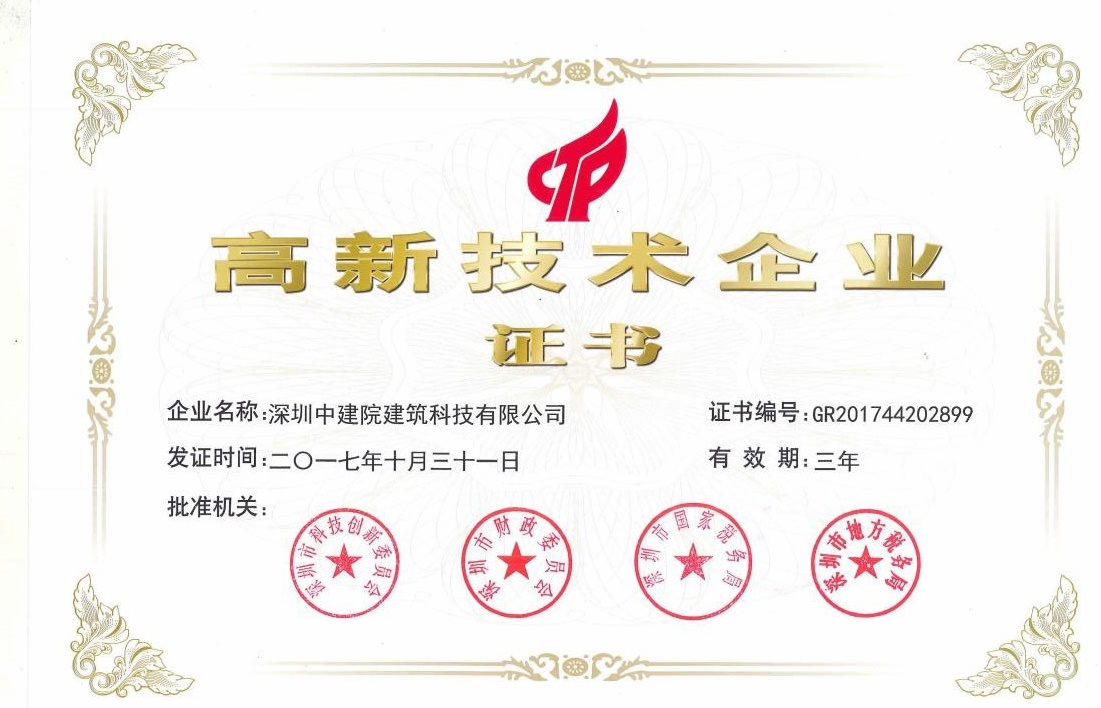 日前,全國(guó)高新技術(shù)企業(yè)認(rèn)定管理工作領(lǐng)導(dǎo)小組辦公室公布了2017年深圳市第二批國(guó)家高新技術(shù)企業(yè)名單,深圳中建院建筑科技有限公司(以下簡(jiǎn)稱(chēng)“深圳中建院”)通過(guò)嚴(yán)格評(píng)審,榮獲國(guó)家高新技術(shù)企業(yè)認(rèn)定(證書(shū)編號(hào):GR201744202899)。